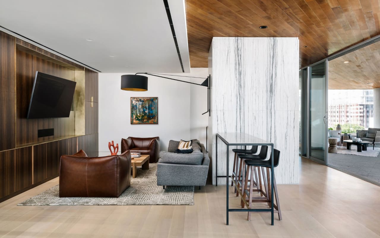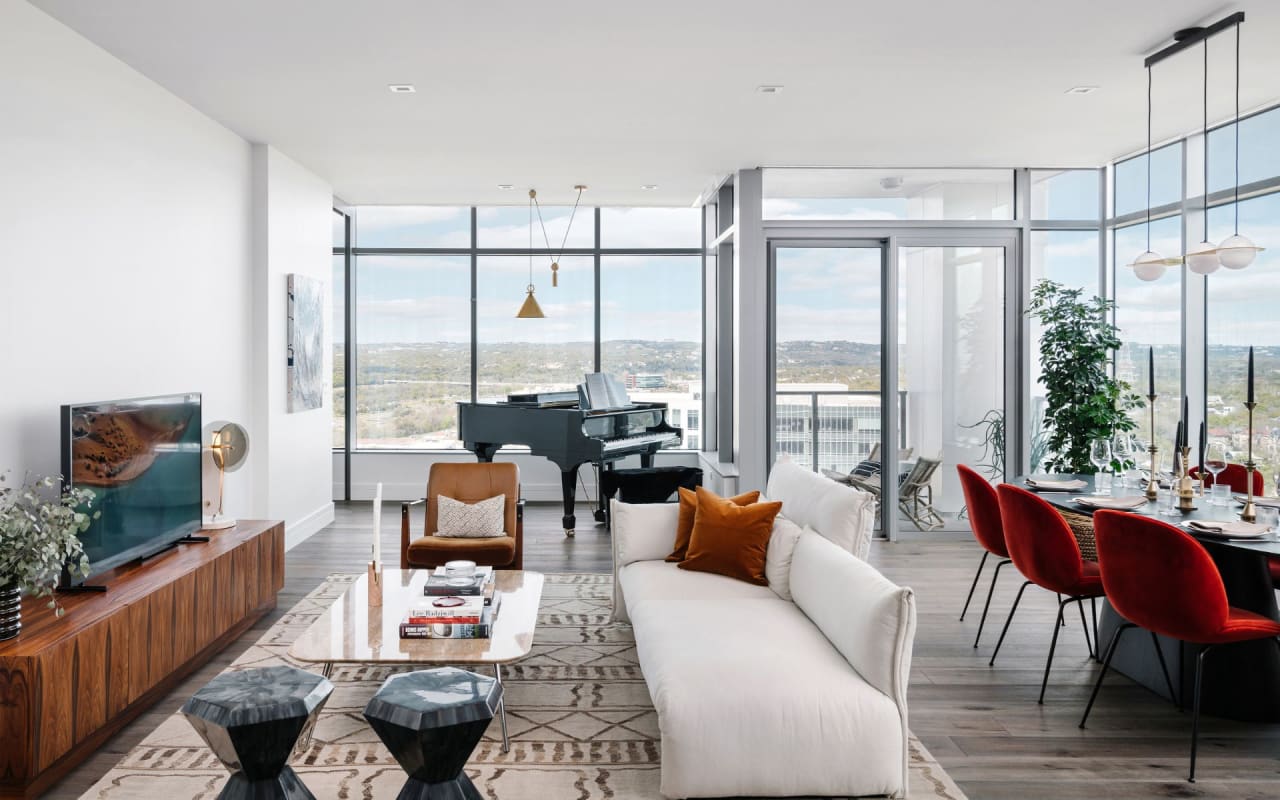With only 154 residences, Fifth and West is a luxury residential tower packed with amenities, not people. Envisioned by Texas-based architects, Gromatzky Dupree & Associates, this triangle-shaped building extends 448' into the Austin skyline, offering residents sweeping 315-degree views. Award-winning local architect Michael Hsu designed the interior spaces with an eye towards natural and unexpected details. Fifth and West reframes the art of living downtown with striking residences, effortless ownership, and a perfect location.