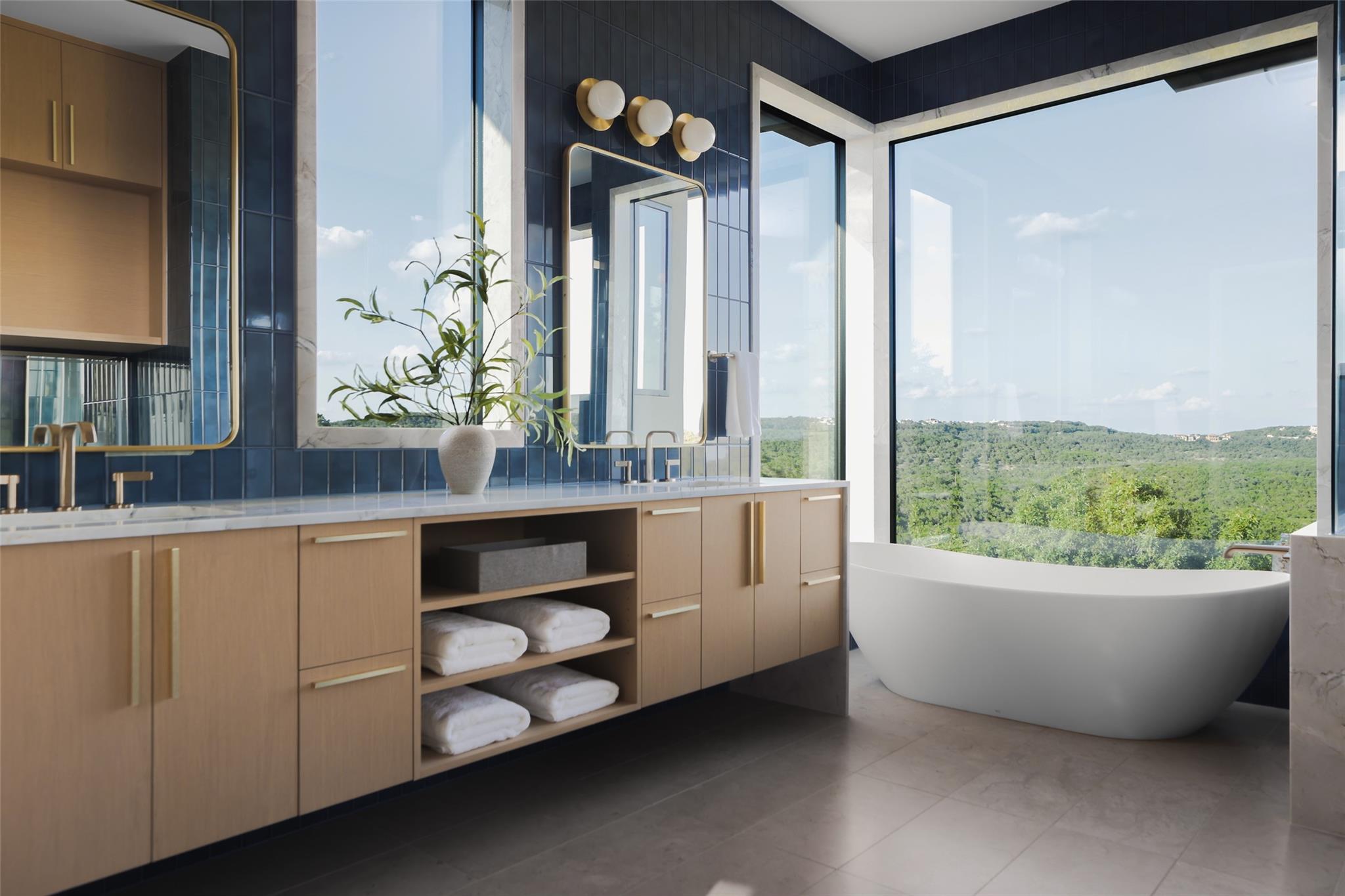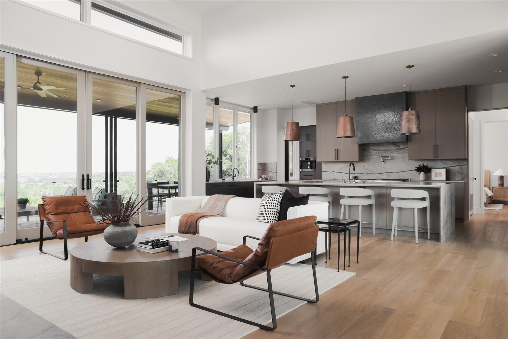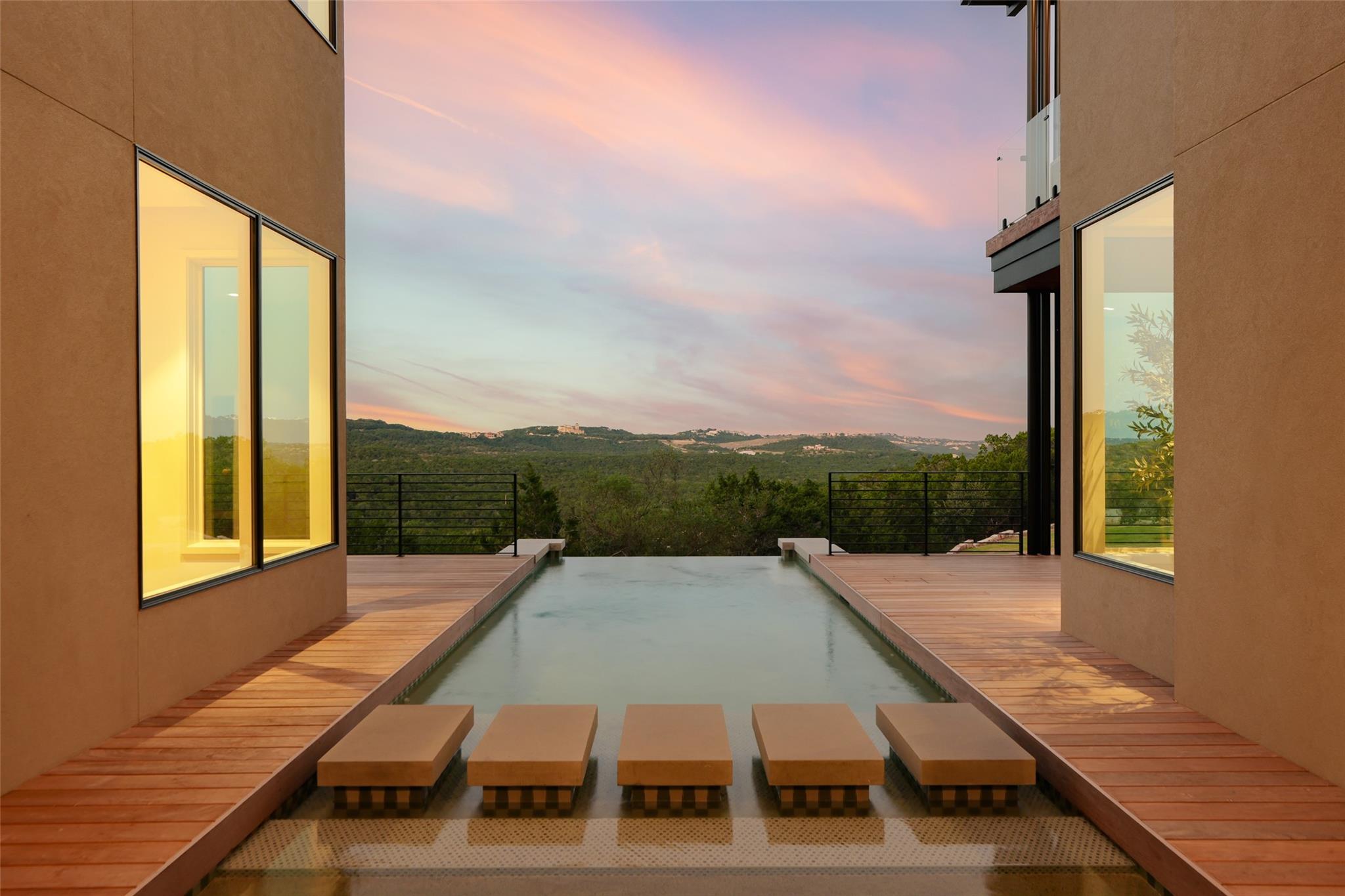 Perched in a tranquil Hill Country setting with sweeping views of the iconic 360 Bridge, 4315 City Park Road is a striking newly completed residence by Next Custom Homes, in partnership with A New Hope Home Builders. Offering 8.1 acres and +/- 5,500 square feet of thoughtfully designed living space, this home is an architectural blend of elegance and functionality, with seamless indoor-outdoor living. Expansive windows frame the natural vistas from nearly every room, while multiple living spaces create flexibility for entertaining, relaxation, and family life. The home features five bedrooms, a study, and a media room. The fifth bedroom can also serve as an at-home gym and is equipped with a sauna, steam shower, and dedicated power for a cold plunge. The chef's kitchen is a showpiece, outfitted with built-in Wolf appliances including a steam oven, wall oven, and coffee system, as well as two dishwashers, a Sub-Zero refrigerator, wine storage, and a freezer with ice maker. The primary suite offers exceptional convenience with a stackable washer/dryer in the closet, complementing the home's main laundry room. Expansive outdoor living is a hallmark of the property, with 1,697 square feet of decking that captures the breathtaking panoramas. The infinity pool and jacuzzi, with WiFi-enabled controls, offer an unparalleled setting to unwind while watching the sun set over Austin's hilltops. A fully equipped kitchenette, outdoor grill, and three-car garage further enhance the home's livability. Every detail--from the outdoor entertaining spaces to the media room and wellness amenities--has been curated for a lifestyle that is both elevated and deeply connected to its serene surroundings. Tax and assessed values are estimates for illustration purposes only. Square footage is per builder plans and any interested party should confirm and not exclusively rely on the information contained herein. All figures should be independently verified.