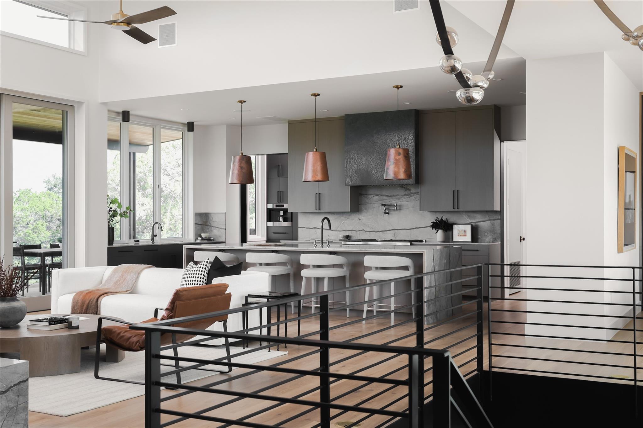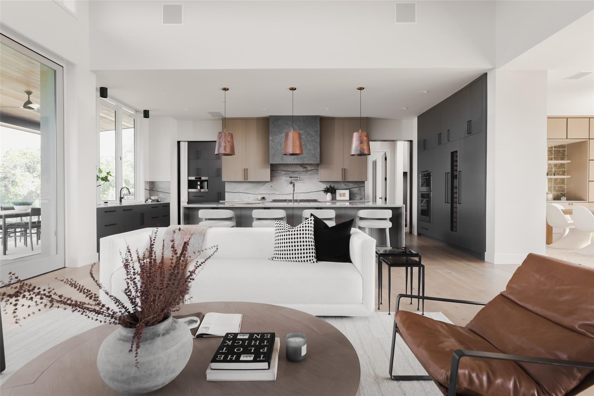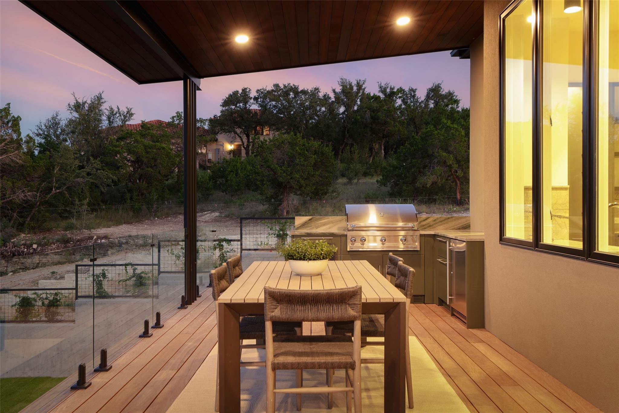Perched in a tranquil Hill Country setting with sweeping views of the iconic 360 Bridge, 4315 City Park Road is a striking newly completed residence by Next Custom Homes, in partnership with A New Hope Home Builders. Offering 8.1 acres and +/- 5,500 square feet of thoughtfully designed living space, this home is an architectural blend of elegance and functionality, with seamless indoor-outdoor living. Expansive windows frame the natural vistas from nearly every room, while multiple living spaces create flexibility for entertaining, relaxation, and family life. The home features five bedrooms, a study, and a media room. The fifth bedroom can also serve as an at-home gym and is equipped with a sauna, steam shower, and dedicated power for a cold plunge. The chef's kitchen is a showpiece, outfitted with built-in Wolf appliances including a steam oven, wall oven, and coffee system, as well as two dishwashers, a Sub-Zero refrigerator, wine storage, and a freezer with ice maker. The primary suite offers exceptional convenience with a stackable washer/dryer in the closet, complementing the home's main laundry room. Expansive outdoor living is a hallmark of the property, with 1,697 square feet of decking that captures the breathtaking panoramas. The infinity pool and jacuzzi, with WiFi-enabled controls, offer an unparalleled setting to unwind while watching the sun set over Austin's hilltops. A fully equipped kitchenette, outdoor grill, and three-car garage further enhance the home's livability. Every detail--from the outdoor entertaining spaces to the media room and wellness amenities--has been curated for a lifestyle that is both elevated and deeply connected to its serene surroundings. Tax and assessed values are estimates for illustration purposes only. Square footage is per builder plans and any interested party should confirm and not exclusively rely on the information contained herein. All figures should be independently verified.
